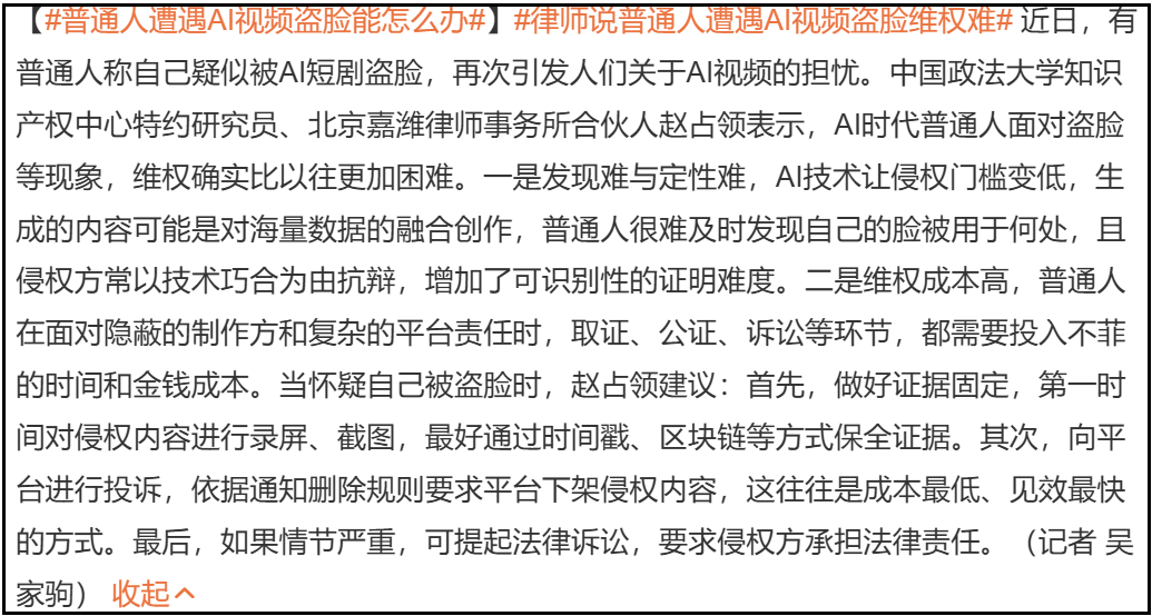 正如网友所说,明星授权ai进可攻退可守,签约可以拿钱,后悔了可以收回,被侵权了有精力去维权,普通人呢?
