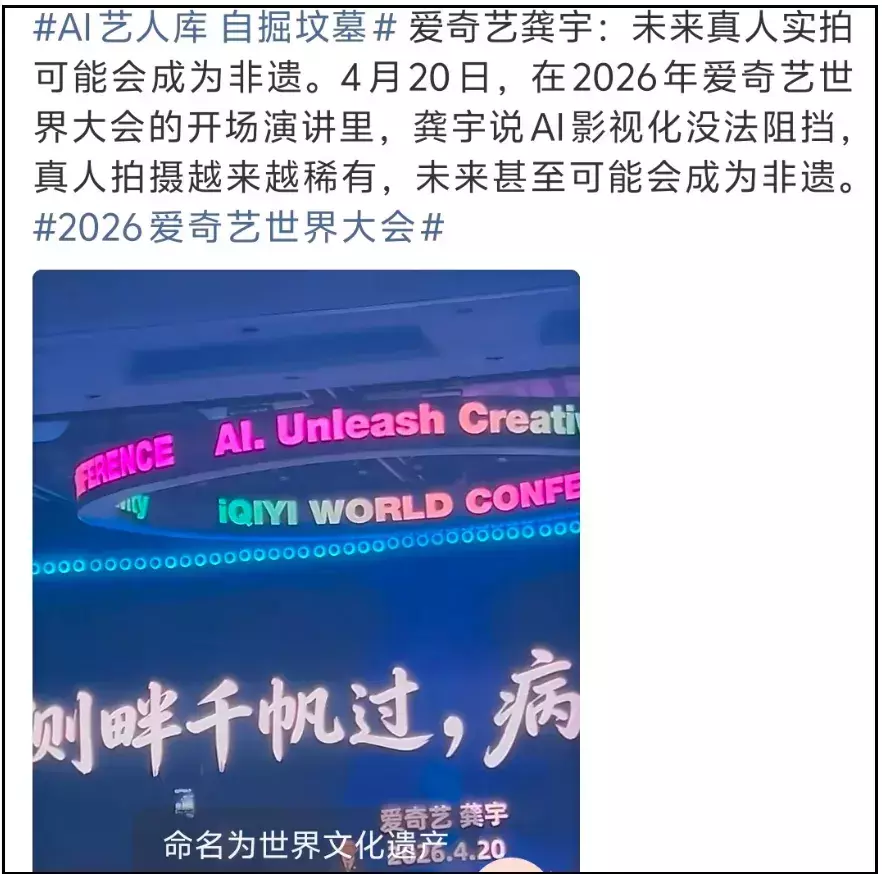 作为头部播放平台的CEO,他谈起ai影视化,表示未来真人实拍剧有可能成为非遗,大谈真人演员拍戏有多么辛苦。