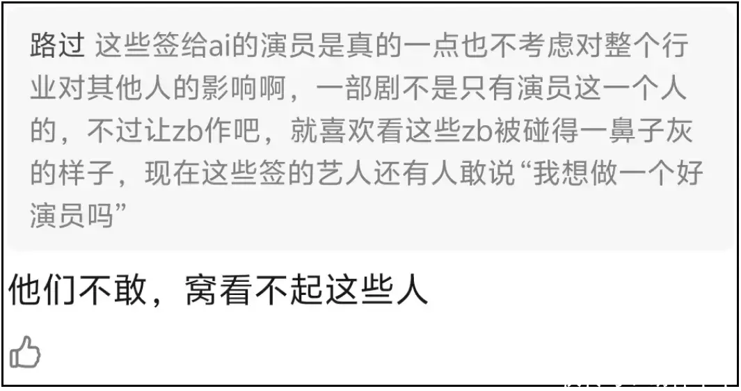 当然了,抵制ai演员不等于抵制ai。