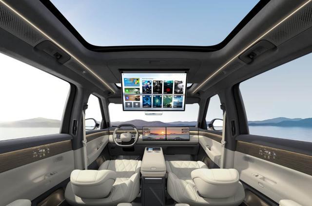而来到后排,大众ID.ERA 9X的后排车门有接近90°的开门角度,上下车时会更加方便,同时也提供了后排右侧的零重力座椅模式,再结合21.4英寸的吸顶大屏以及车载冰箱和氛围灯,也都提高了车内的档次感。而在其它细节部分,大众ID.ERA 9X还在后排车门板处集成了“魔术屏”,再结合区别于主流吸顶屏的调节结构等细节设计,这些都会成为大众ID.ERA 9X的部分产品亮点。