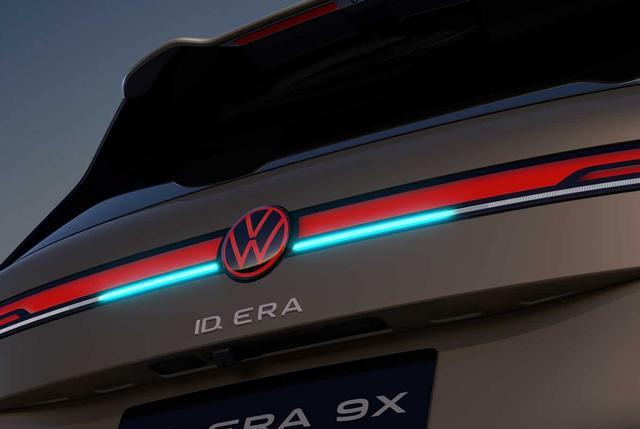 再就是外观设计,大众ID.ERA 9X采用最新的设计风格,虽然也属于大众ID系列,但确实与其它车型有很大的差异。造型粗犷且光源饱满的的日行灯带,点亮之后不仅显得科技感十足同时也会提升整车的档次感。除此之外,可发光的品牌Logo,以及封闭式的前脸和分体式的远近光灯,这些也都是新能源车标志性的设计元素。