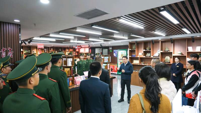 在吉林杨靖宇干部学院与中国青年报社联合打造的东北首家青年书店——“靖思”青年书店,青年们了解了书店的建设情况。
