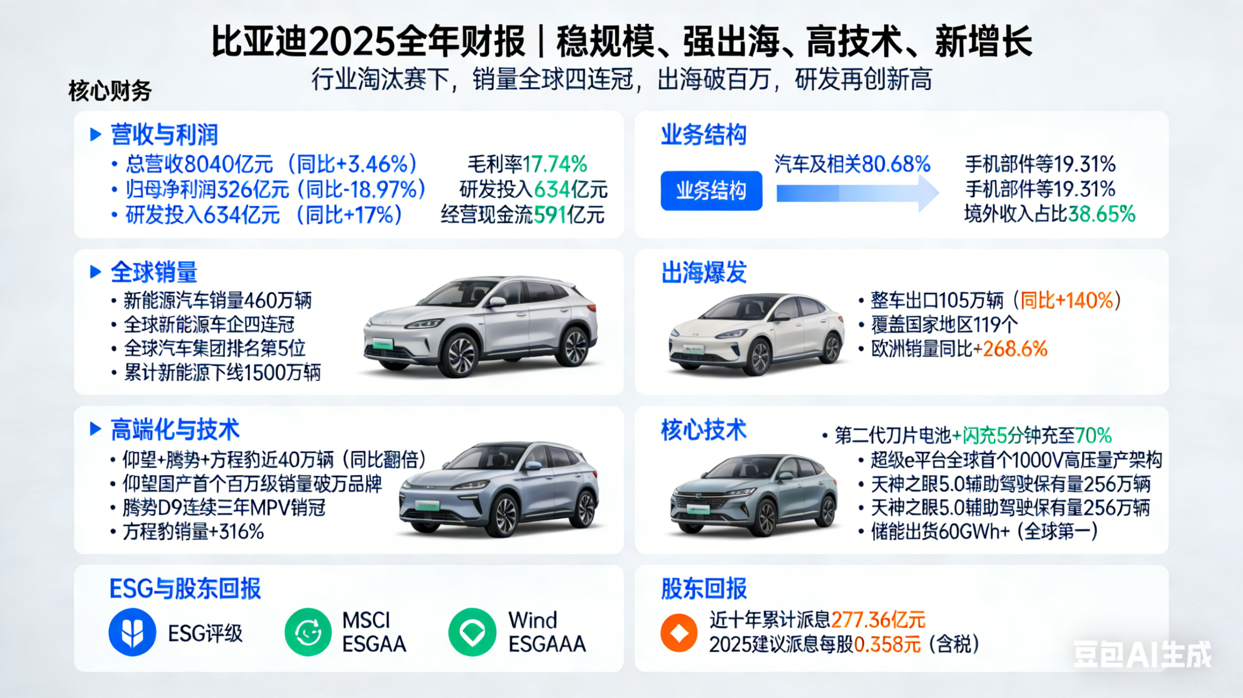 展望2026年,比亚迪将以"技术为根、出海为引擎"为战略纲领,持续深耕第二代刀片电池、超级e平台以及天神之眼等核心技术的规模化落地。在新能源汽车行业正式进入智能化下半场的竞争格局下,如何在价格战延续的内忧与海外扩张资本需求的外患中重建利润率,将是检验比亚迪下一阶段战略定力与执行力的真正考题。