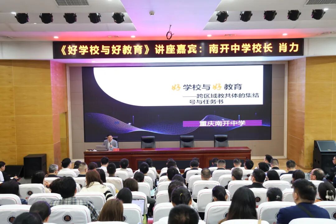 4月13日,重庆南开中学校长肖力来到綦江中学,举行了题为“好学校与好教育——跨区域教共体的集结号与任务书”的专题讲座。讲座中,肖力紧扣好教学、好学校、好教育三大教共体建设任务,围绕教育质量、学校品相、社会信仰三大好学校核心画像,带来了一场兼具思想高度、实践深度与教育温度的分享。